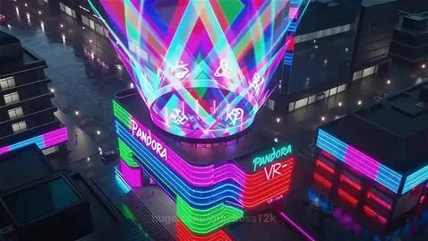Wan 2.5 Preview Prompt: Cinematic aerial shot, year 2099. The camera glides smoothly above the neon city at night, descending toward Pandora VR-club. From above, the club glows like a jewel, its architecture radiating saturated neon colors. Above the building floats a colossal hologram — a luminous crown of light, shimmering in purples, blues, greens, reds, and whites. The hologram pulses and shifts, forming abstract patterns and symbols that mark the club as legendary, not ordinary. Its glow reflects across rooftops, casting surreal colored shadows. The city around is subdued, ensuring the club is the clear focal point. Streets are visible but empty; no people are shown from this height. The hologram’s brilliance dominates the skyline, making it clear this is the most exclusive venue in the virtual world. Camera: smooth aerial glide, rotating gently to showcase the hologram and the club’s architecture from multiple angles. Motion is steady, cinematic, and free of blur. No subtitles. No camera model, lens, ISO, or technical parameters visible anywhere. No VR headsets, no cables, no modern 21st-century details.