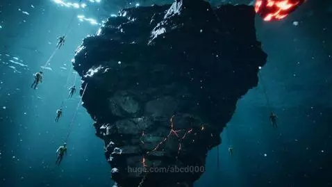 Kling 2.5 Turbo (pro) Prompt: Prompt: Ultra-realistic underwater cinematic scene in the deep ocean. A massive ancient rock formation fades into darkness, surrounded by drifting sediment and soft light rays. Small humanoid figures hang along its edges, bound in rusted shackles, motionless. A molten meteoroid enters at a 45-degree angle at high speed, glowing red-orange, disturbing the water with turbulence and bubbles. Impact—rock remains stable, small cracks form. A shockwave spreads outward. A bright spark ejects and moves downward. The camera tracks it. The spark hits a shackle and breaks it. Close-up: rust dispersing, chain releasing, freed hands. Photorealistic, cinematic lighting, smooth motion, realistic physics, high detail.