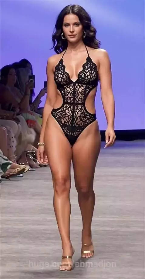 The beauty shows off fashionable clothes from all sides, spinning as she moves from the beginning of the catwalk to the end with forward and back movements.