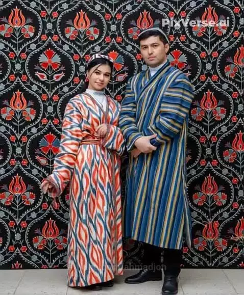 The groom invites the bride to show her clothes from all sides and with a slow circular motion demonstrates the clothes of the groom and the bride.
