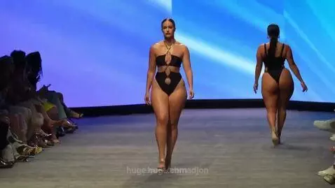 Description: A smiling character begins moving smoothly from the front of the runway until she spins completely in front of the camera. After revealing the full front of her clothing, she turns back with a smile toward the camera and walks down the runway to reveal the entire garment. Natural body physics, realistic muscle and fabric movements, smooth animation, and seamless transitions should be emphasized. The camera should remain static, the character's view should be fixed, the lighting should be consistent, and the rendering should be high-quality and cinematic.
