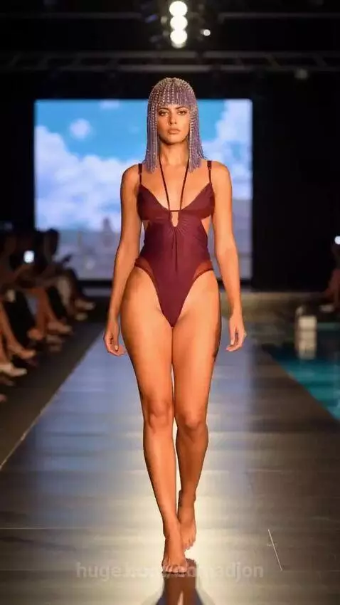 The crazy girl shows herself on the catwalk from all sides