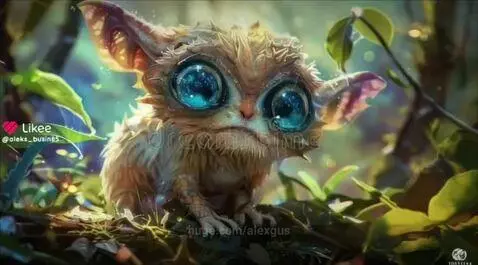 funny creature with bulging eyes approaches a mushroom, tries to pull it out, but falls. Then, it looks around, and another creature runs by, causing the first one to look on in surprise, creating a comical situation.