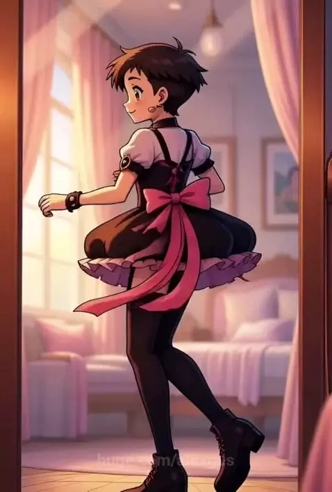 AI Prompt: Scene: Semi-dark Victorian room. Main characters:Elegant woman in Gothic dress.Cute individual in pastel lolita dress.Sequence:Individual poses, woman smiles: "I'm so into it! ๐"Woman strokes individual's head, they smile.Individual scratches leg, adjusts tights, trips: "These tights are too tight!"Woman laughs, individual blushes.Final: "Idealized Dreams vs Harsh Reality ๐"