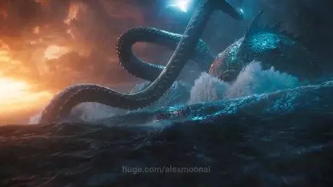 sora 2 Prompt: A hyper-realistic cinematic ocean apocalypse at sunset. A massive steel ship races through a violent black-blue sea, smashing through walls of water as the camera skims just above the surface, catching exploding spray, reflections, engine glow, and thunder flashing across the waves. The sky is filled with towering storm clouds, burning orange light, lightning veins, rain curtains, and impossible scale. Ahead, real deep-sea nightmares rise from the ocean: a colossal kraken with wet scarred flesh, giant squid eyes, and tentacles thicker than bridges; a titanic sperm-whale-like leviathan covered in barnacles, scars, and glowing parasite trails; and a monstrous anglerfish-beast the size of a skyscraper, with translucent fins, bioluminescent lures, rows of jagged teeth, and a mouth opening like a living abyss. Their bodies feel physically real, heavy, ancient, and terrifying, with whale skin, squid texture, sea scars, water streaming off them, and shockwaves spreading across the ocean. The ship cuts between them at impossible speed. The camera rushes from deck level to a wide aerial reveal as one giant tentacle crashes into the sea, throwing up a mountain of water. Another creature erupts beside the ship, its eye reflecting lightning and the burning horizon. The ocean glows with blue bioluminescence and white storm light. Every splash is enormous, every impact creates rings of foam, mist, rain, and flying debris. Final shot: the ship becomes tiny against a god-scale ocean, surrounded by towering monsters rising into the storm, while sunlight, lightning, spray, and sea mist explode into a blinding white-gold and electric-blue climax. Ultra realistic, Hollywood-level cinematography, epic scale, terrifying beauty, crisp detail, volumetric light, wet textures, dramatic motion, unforgettable final reveal.