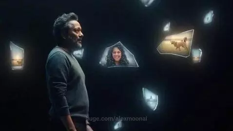 sora 2 Prompt: poetic memory film. In a dark room, dozens of floating glass shards circle a middle-aged man. Each shard reflects a lost memory: his mother laughing in snow, a dog running through sunlight, a child version of him at a kitchen table. He reaches toward the shards and with each touch the room fills with fragments of those moments, wind, snow, laughter, warm light. Final close-up: one shard reveals an empty chair in the present. He exhales, smiles softly, and lets the shard dissolve into light. Photoreal, dreamlike reflections, graceful camera orbit, emotional realism.