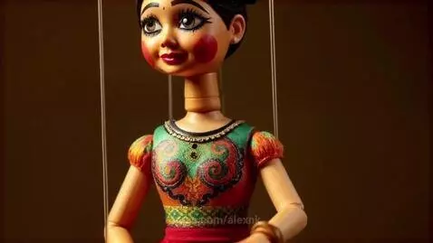 A marionette doll moves and talks at a performance