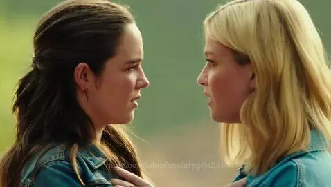 A beautiful girl sees a blonde girl and they look like they will hug but then they start to fight.