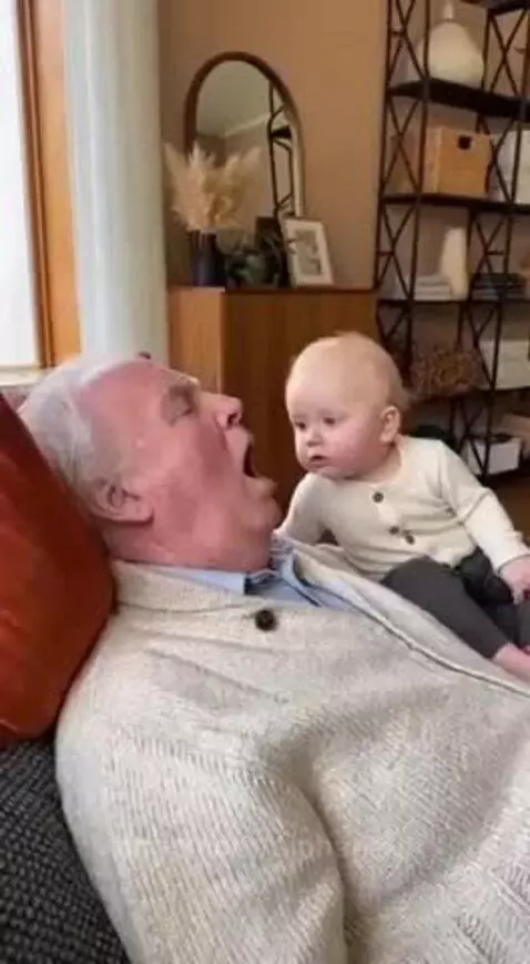Sleeping grandma….the baby finds it funny