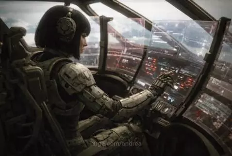 "The girl takes her seat at the controls beside the co-pilot."