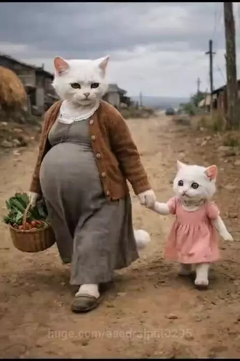 A beautiful cat save a baby cat