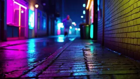 Hunyuan Video Prompt: Action (8s): A rainy night in a narrow neon-lit alley. A realistic in a hooded young woman runs along the wet pavement, neon signs reflecting in puddles. Footsteps of a pursuer echo behind him. The cat turns, looks straight at the sound and says in English speech language English: «You are the next target! ». She plants her foot on the damp brick, pushes off the wall and vanishes into shadow. Camera: Handheld, low-angle tracking shot that follows the cat from behind, with quick rack focus to the pursuer's reflected silhouette in a puddle, then a swift vertical pan during the wall push and a fast cut to black as he disappears. Lighting: Cold blue and deep magenta neon key lights, high-contrast backlight from a vertical sign to create a sharp silhouette during the jump. Strong wet-surface specular highlights on pavement. Sound: Close wet footsteps, echoing distant steps, rain hitting metal, a short metallic scrape at the wall push. Dialogue line must be lip-synced in English . (Speech language: English) Aesthetic: Cyberpunk, shallow depth of field during close tracking, subdued color grading favoring cyan and magenta, cinematic grain, wet reflective textures. Visual accents: Neon glint in the her eyes, steam from a grate, tiny hand marks on the brick where he pushed off.natural camera shake, bokeh lights in the background, dynamic lighting and realistic motion physics, filmed with a Sony FX3, 50mm lens, ISO 800, f/1.8, handheld style.