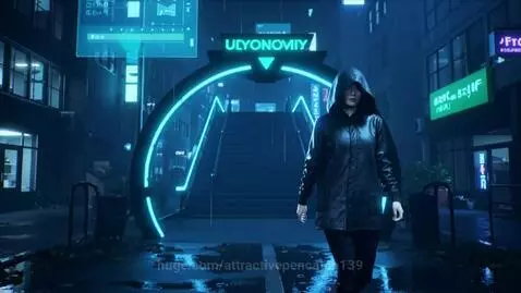 Kling 2.5 Turbo (pro) Prompt: А cinematic ultra-detailed photorealistic Scene. Entering the underground Metro. Wide establishing shot of a rainy cyberpunk street at night. Hooded young woman walks toward a glowing metro entrance marked “NEUROLINK LINE”. Transparent holographic panels hover above the stairs, showing train times and AI weather updates. Raindrops ripple on neon reflections. The camera slowly follows her from behind, smooth cinematic tracking. Soft low-frequency hum of the city blends with quiet synth pads. photorealistic ultra detail, cinematic lighting.