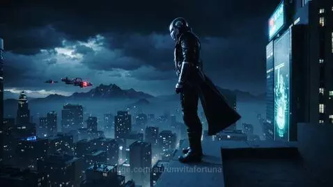 Kling 2.5 Turbo (pro) Prompt: A cinematic, slow‑motion shot on planet Earth: a lone futuristic warrior in a long black coat stands on the edge of a rooftop at night, bending his knees and preparing to jump like Neo from The Matrix. He launches into the air and freezes high above a vast cyberpunk city, suspended in mid‑air. Below him stretches a dense skyline of skyscrapers covered in neon signs and holograms, thousands of glowing windows and moving flying cars, all under a dark, cloudy night sky. Dynamic camera movement, dramatic lighting, deep contrast, ultra‑detailed, epic sci‑fi atmosphere.