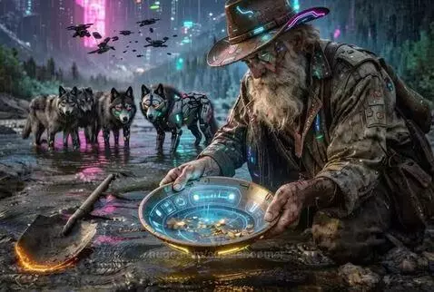 1900's mountain man - Cyberpunk Style - nature and gold panning