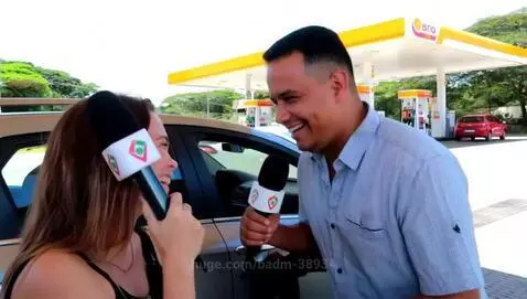 Luma Dream Machine Ray2 Prompt: A realistic interview scene at Posto Vila Rica in Cambira, Brazil, during a sunny afternoon. A female reporter is holding a microphone and smiling, standing next to a happy man beside his car. They are both relaxed and casual. The reporter asks in Brazilian Portuguese: “O senhor tá sorrindo à toa! Qual o motivo dessa felicidade toda?” The man laughs and responds: “Ué, é que aqui no Posto Vila Rica de Cambira a gasolina tá barata e ainda rende mais! A gente até sai cantando pneu de alegria!” Both laugh naturally. He waves, gets in the car, and drives away still smiling. The environment shows a typical Brazilian gas station, with realistic cars, fuel pumps, and bright lighting.