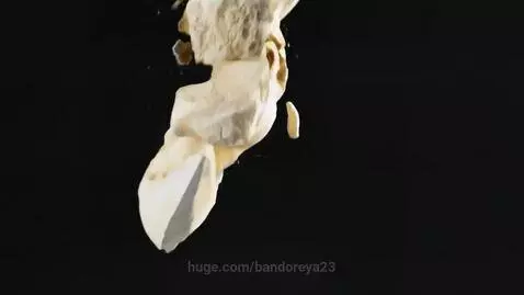 "ancient Greek marble statue head falling, slow motion, black background, shattering into marble fragments"