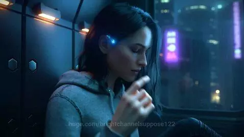 Kling 2.5 Turbo (pro) Prompt: :Style: 2099 year. Cyberpunk cinematic short film, ultra-detailed, photorealistic, realistic lighting and materials, volumetric light and shadow, soft depth of field, HDR, 8K quality. Color palette: deep cyan, magenta, violet and cold neon tones with soft ambient haze. Atmosphere: moody, reflective, slightly melancholic but filled with inner strength. Textures: wet asphalt, glass reflections, flickering holograms, metallic surfaces, neon bokeh. Camera setup: Anamorphic lens, cinematic framing, shallow focus, low-angle or mid-shot depending on emotion, realistic motion blur, light flares and particle effects. Optional drone sweeps or slow panning for environmental shots. Lighting: Mixed neon and ambient backlight with secondary reflections.Scene 28.2 Use red or purple accent lights for emotional tension, blue or teal for calm introspection. Small shielded apartment with soft amber lights. Walls lined with signal dampers. young woman turnoff her neural cyber-implant of interface and exhales. Peace. Here, she can be no one — finally.
