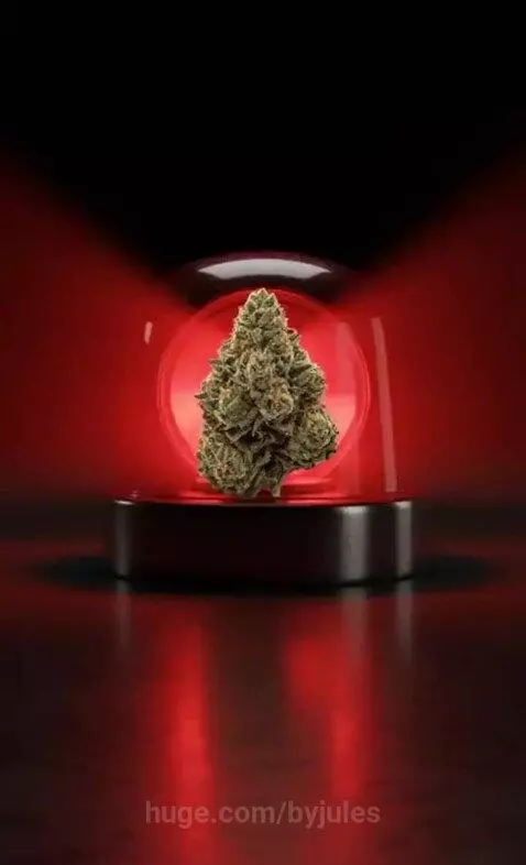 AI Prompt: Cinematic close-up of a realistic red rotating emergency beacon on a pitch-black studio background. Inside the translucent red dome, a large, highly detailed cannabis bud (skunk) is positioned in the center. The internal chrome reflector spins smoothly around the bud at a steady rhythm. Intense volumetric red light beams sweep through the darkness, illuminating the resinous crystals of the bud with every pass. High-end product videography, hyper-realistic textures, 8k resolution, seamless loop. Background audio: upbeat, bass-heavy reggae dancehall rhythm.
