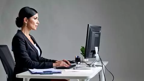 Kling 1.6 (pro) Prompt: русская женщина (40 лет) с чёрными волосами и чёрными глазами, стрижка каре, сидит за современным рабочим столом. На ней деловой костюм, уверенная поза. На мониторе видны элементы веб-разработки (код, макеты сайтов). Мягкий студийный свет, профессиональная съёмка.
