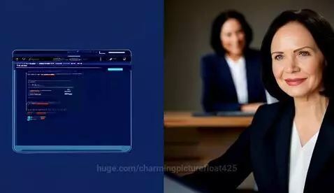 The general plan: the woman continues to work, icons of her services hover in the air around her: