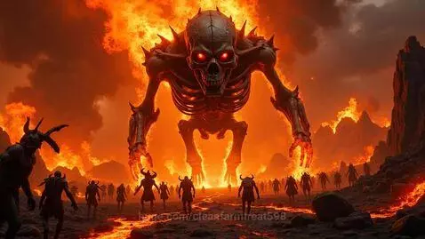 Giant Burning Skeleton in Hell