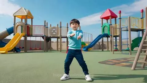 a kid playing in a playground innocently makes a super hero stance, but rather than nothing happening, his clothes suddenly turn into super hero clothes and he jumps into the air and flys away