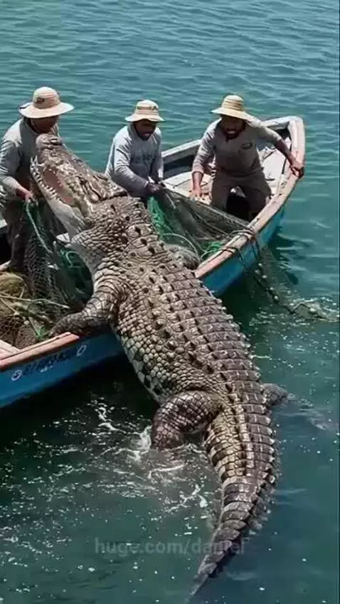 Crocodile jumps into boat
