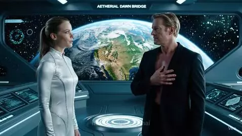 A woman with silver catsuit in a ship that rescues her future husband