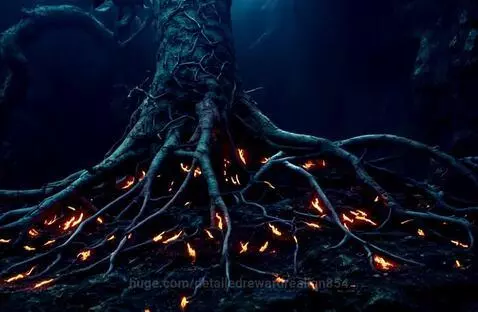 Ancient Tree Roots with Glowing Embers