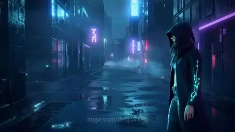 Kling 2.5 Turbo (pro) Prompt: Style: 2099 year. Cyberpunk cinematic short film, ultra-detailed, photorealistic, realistic lighting and materials, volumetric light and shadow, soft depth of field, HDR, 8K quality. Color palette: deep cyan, magenta, violet and cold neon tones with soft ambient haze. Atmosphere: moody, reflective, slightly melancholic but filled with inner strength. Textures: wet asphalt, glass reflections, flickering holograms, metallic surfaces, neon bokeh. Camera setup: Anamorphic lens, cinematic framing, shallow focus, low-angle or mid-shot depending on emotion, realistic motion blur, light flares and particle effects. Optional drone sweeps or slow panning for environmental shots. Lighting: Mixed neon and ambient backlight with secondary reflections. Use red or purple accent lights for emotional tension, blue or teal for calm introspection. Scene 39 Hooded young woman. I don’t ‘log in’ to the Net. I’m always in it. I just sometimes focus on one layer—the one you call ‘reality’.