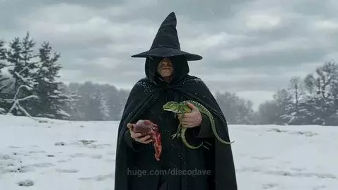 A Wizard in a Blizzard holds a Lizard and a Gizzard