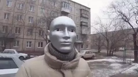 sora 2 Prompt: The meme man finds wow content without any problems. He is glad that his time has come. in a courtyard somewhere in Russia. In Russian language. Old VHS camcorder handheld, wobble. Shot on 35mm film, natural grain, organic texture. Funny crazy mood. VHS home video. No text overlays, watermarks, or UI graphics. Hands and faces stay photoreal with clean proportions.