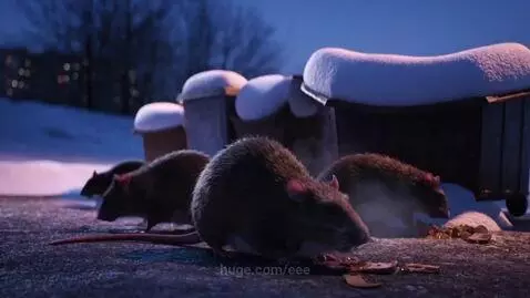 sora 2 Prompt: Scene: Late winter evening, dusk. Kamchatka, on the outskirts of a city (for example, Petropavlovsk-Kamchatsky). A snow-covered dump/garbage dump near the container sites. The garbage cans are covered with snow caps, some almost completely hidden. Only the corners of the lids and pieces of dark trash stick out from under the snow. Subjects: 4-5 large, massive brown rats. Their fur is tousled, and steam comes from their breath. They actively, almost desperately, rummage through the narrow thawed patches between the snow and the dumpster, pulling out scraps. Close-ups: tenacious paws, shining eyes, twitching whiskers, smeared muzzles. Sound: A muted winter soundscape: the distant sound of wind, the crunch of snow and ice under paws, the slurping, crunching sounds of eating, the shrill scraping of claws on the metal of the tank, short squeals and scuffling. Action: The rats are focused on their food but acting wary. Suddenly, one of the rats, the largest, freezes abruptly and raises its head. It looks directly at the camera (lens). Its posture is tense. There's a momentary pause (1-2 seconds). Then it emits a sharp, aggressive sound and makes a powerful, almost leaping lunge directly at the camera (lens). The final movement is a sudden movement, the frame blurs, and a possible impact or hissing sound is heard. Then the screen goes black.