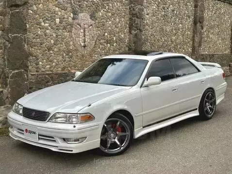 The Mark 2 moves slowly and silently down an empty street. The camera smoothly rotates around the car 360 degrees. Minimalism, atmosphere, cinematic, slow motion.