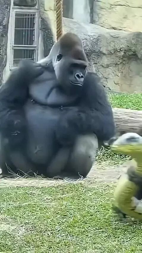 Baby gorilla reactes and his father scared 😳 to Snake 🐍