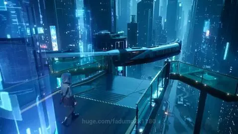 Kling 2.5 Turbo (pro) Prompt: Scene .Approaching the Monorail Station. A cinematic ultra-detailed photorealistic short scene.Cyberpunk,2099 year. Wide shot of elevated glass platforms above the city. The hooded young girl walks toward the station gate as maglev trains glide silently in the distance. Data holograms drift like mist around support pillars. A soft wind blows through her hood, subtle motion of fabric. 5 seconds, cinematic composition, ultra-photorealistic, aerial depth.