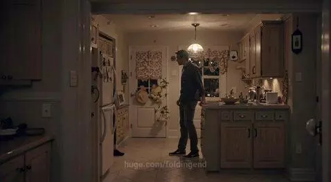 The scene ends with both characters standing in tense silence, staring at each other across the kitchen as the camera slowly settles into a close shot. Cinematic lighting, natural acting, subtle camera movement, shallow depth of field, ultra realistic, sharp focus, cinematic storytelling.