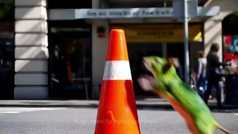 Green Creature on Traffic Cone