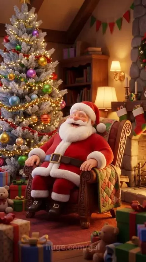 Kling 2.5 Turbo (pro) Prompt: A fun scene in the style of retro-funk. Santa Claus in his classic red robe gets up from a leather armchair by the fireplace, straightens his sleeves and breaks into a fiery dance: disco, popping or crump. He may wear mirror disco glasses. Elves around fall into ecstasy, start clapping to the beat.