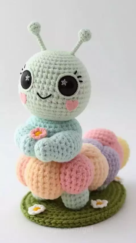 sora 2 Prompt: A whimsical, detailed, and cinematic scene. A large, charming knitted caterpillar with friendly button eyes and a smiling mouth. The caterpillar passionately sings into a small honey-colored microphone, and its body swaying rhythmically. It dances a funny, clumsy dance, raising several of its numerous knitted legs. The style is soft, textured, and touching, reminiscent of slow-motion animation from Laika Studios or illustrations for a children's book. A gloomy, dramatic sunset lighting with orange, pink, and purple hues. The atmosphere is melancholic, but also cute and fun.