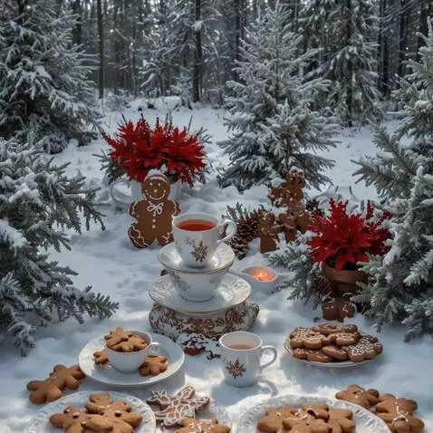 bring the picture to life so that the gingerbread men start drinking tea and dancing