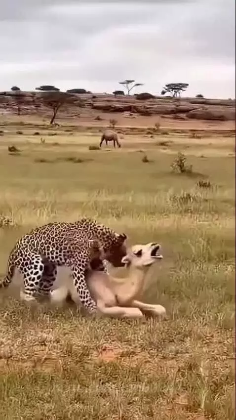 Camel save his baby 😲 leopard attacks