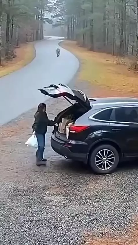 Woman protect very differently from lion