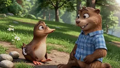 Seedance 1.5 Pro Prompt: Create a 30‑second animated video. A beaver tells a platypus a joke about an American, a Greenlander, and a Canadian. The beaver is cheerful and animated; the platypus listens attentively and laughs at the end. Cartoon style, bright colors, friendly atmosphere.