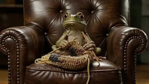 Seedance 1.5 Pro Prompt: A hyper‑realistic video with surreal elements. Close‑up shot: a real frog sitting in an antique leather armchair. It holds knitting needles with a sweater being knitted from real pasta. You can see the texture of the leather chair, water droplets on the frog’s skin, and the roughness of the pasta. The lighting is cinematic, with soft shadows. The camera slowly zooms in on the sweater, showing how the pasta intertwines into a pattern. Sound design: quiet crackling of a fireplace, the steady tapping of knitting needles.