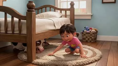 Cow under the bed with kid