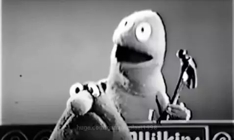 LTX-2 Pro Prompt: old school retro commercial from 1996 about the product "Super Sour Splaat Snacks" with two puppets. the light gray puppet says "boy, this hammer reminds me of Super Sour Splat Snacks!". then the dark gray puppet says "why's that?". then the light gray puppet says "because it always hits the spot!". the light gray puppet then hits the dark gray puppet on the head with a hammer