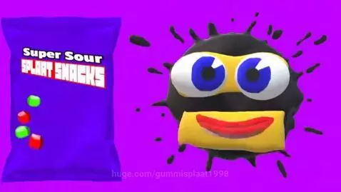sora 2 Prompt: a georgian commercial about a product named "Super Sour Splaat Snacks" featuring a talking cardboard-looking face with realistic eyes and a realistic mouth with purple-ish teeth on an ink splat in a plain pink background. the product on the left is a still image with no animation