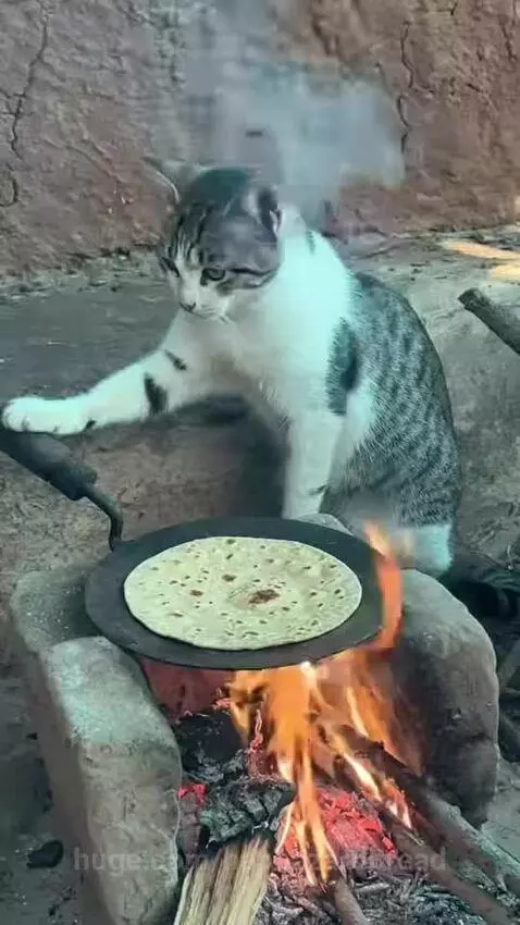 Smart cat he can cook
